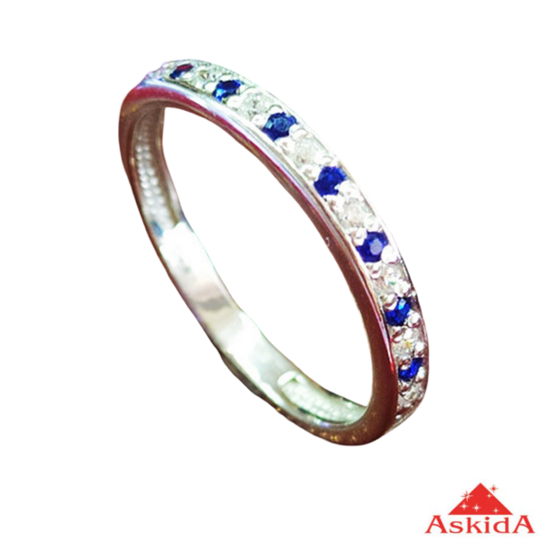 Срібна каблучка 925 проби, дуже витончена, з білими і синіми фіанітами. Середня вага 1,16 гр. Прикраса виконана в мінімалістичному і витонченому стилі, декорована доріжкою з каменів, що чергуються - насичено-синіх і прозорих білих фіанітів, красиво і практично. Тонкий обідок підкреслює елегантність дизайну, роблячи кільце універсальним аксесуаром як для повсякденного носіння, так і для особливих випадків. Поєднання глибокого синього відтінку та іскристого блиску білих каменів створює ефектну гру світла та надає прикрасі благородного вигляду.