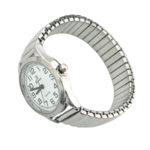 Stylish women's wristwatch M&C/Xwei with quartz movement. Round white case with a diameter of 28 mm. White dial with Arabic numerals. Classic arrow design. The watch comes with a white stretchable metal bracelet with a width of 14 mm. The bracelet on the elastic band is flexible and easy to use, forms a very comfortable and secure fit on the wrist.