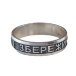 Каблучка "Спаси і збережи" виготовлена зі срібла 925 проби з чорнінням ширина 5 мм, середня вага 3,10 гр. Класичне кільце виконане в лаконічному стилі та прикрашене чорнінням, яке підкреслює священні слова "Спаси і збережи". Глибокий за змістом напис служить оберегом, символом віри, надії та захисту у будь-яких життєвих ситуаціях.